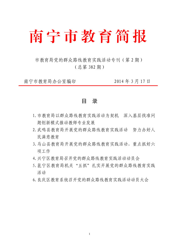 2014年南宁市教育局党的群众路线教育实践活动专刊(第2期)(总第382期)