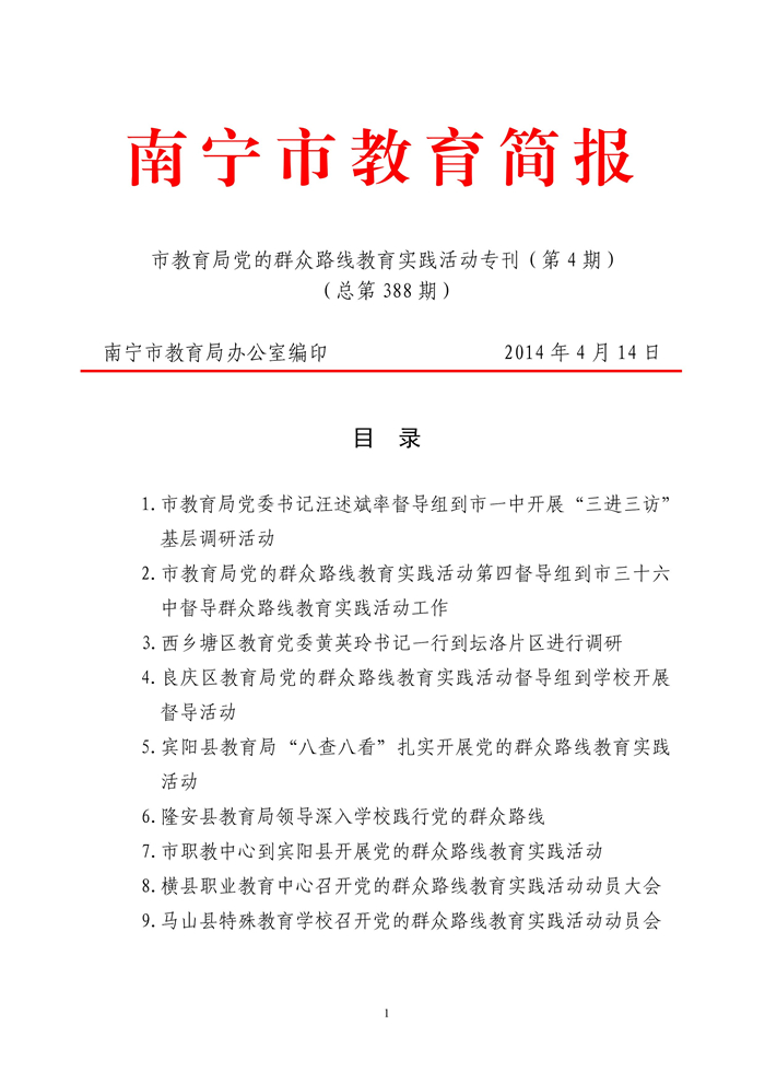 2014年南宁市教育局党的群众路线教育实践活动专刊(第4期)(总第388期)