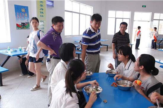 随后,汪书记和二十六中领导班子一行到了二十六中五象校区高一、高二年级办公室慰问高一、高二的全体教师。实地察看了二十六中五象校区的教学楼,校园环境,学生食堂及教工食堂。并与部分高一、高二科任教师进行谈心谈话,了解二十六中五象校区教师在艰苦环境下教学遇到的困难。汪书记最后鼓励南宁市第二十六中学全体教师、学生共同一起解决教学中存在的实际问题,争取再创佳绩!