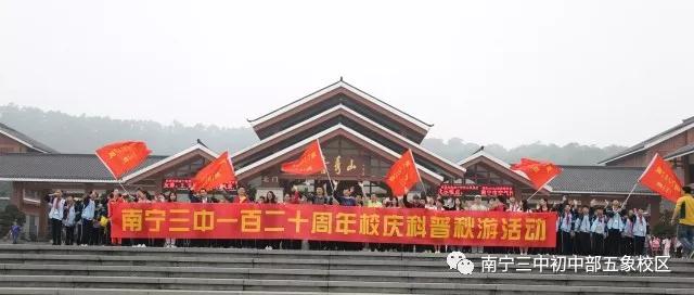 在一百二十周年校庆到来之际,南宁三中初中部五象校区与青秀校区共同举办秋季科普研学活动。本次活动旨让学生亲近自然,放松身心,加强交流,增强团队协作意识,让师生以热情蓬勃的精神面貌迎接一百二十周年校庆。