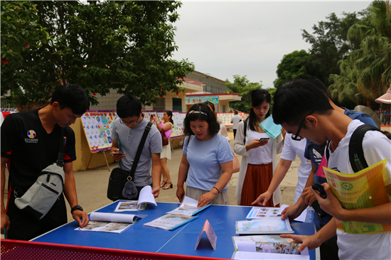 李战副主任和其他来宾、老师们认真翻阅学生作品