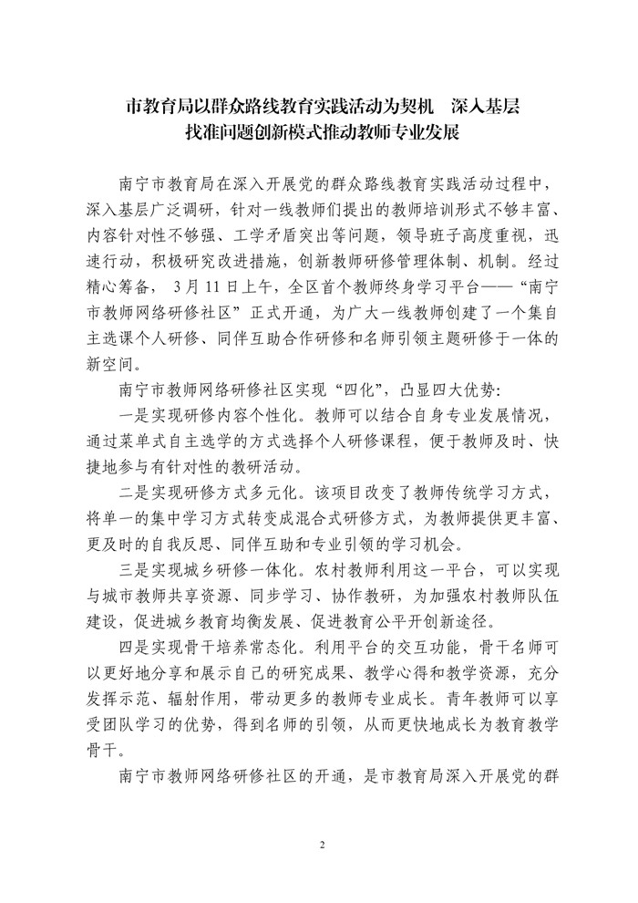 2014年南宁市教育局党的群众路线教育实践活动专刊(第2期)(总第382期)