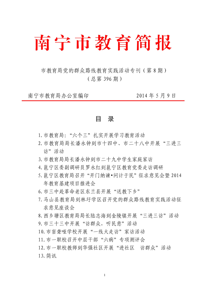 2014年南宁市教育局党的群众路线教育实践活动专刊(第8期)(总第396期)