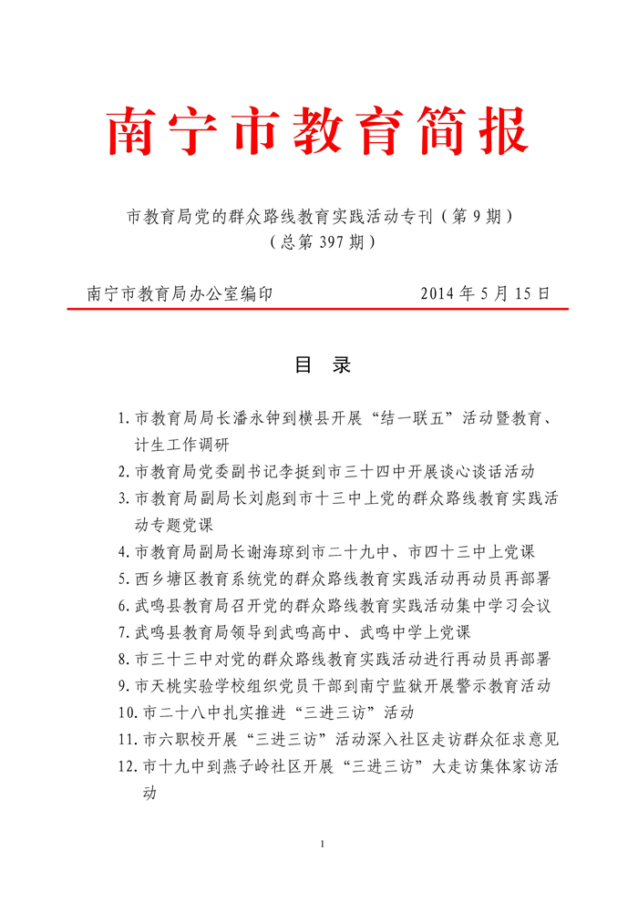 2014年南宁市教育局党的群众路线教育实践活动专刊(第9期)(总第397期)