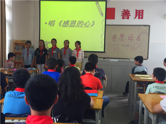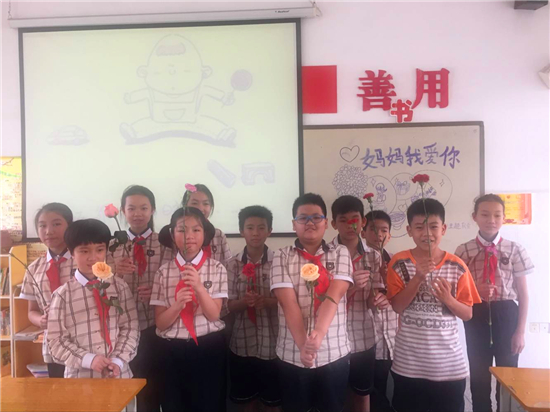 5月12日下午,南宁市卫国小学开展“感恩于心,回报于行”母亲节主题队会活动