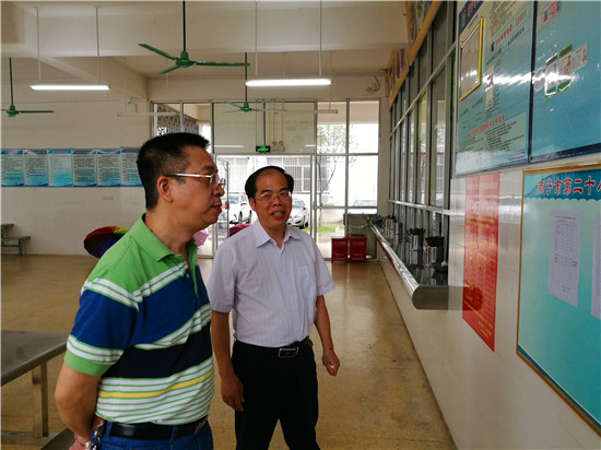 杨捷副局长在黄智伦校长、王冬妹书记的陪同下,查看校容校貌,了解学生饭堂运行情况,随后主持召开校级领导、教师代表座谈会。