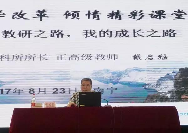 随后,南宁市教科所所长戴启猛做了“专注教学改革 倾情精彩课堂”的专题报告,他与参训教师分享了自己的教研之路和成长之路,并向新任教师赠送书籍。参加培训的新任教师认真倾听专家名师的经验,纷纷表示对教师这个职业有了更深刻的认识。
